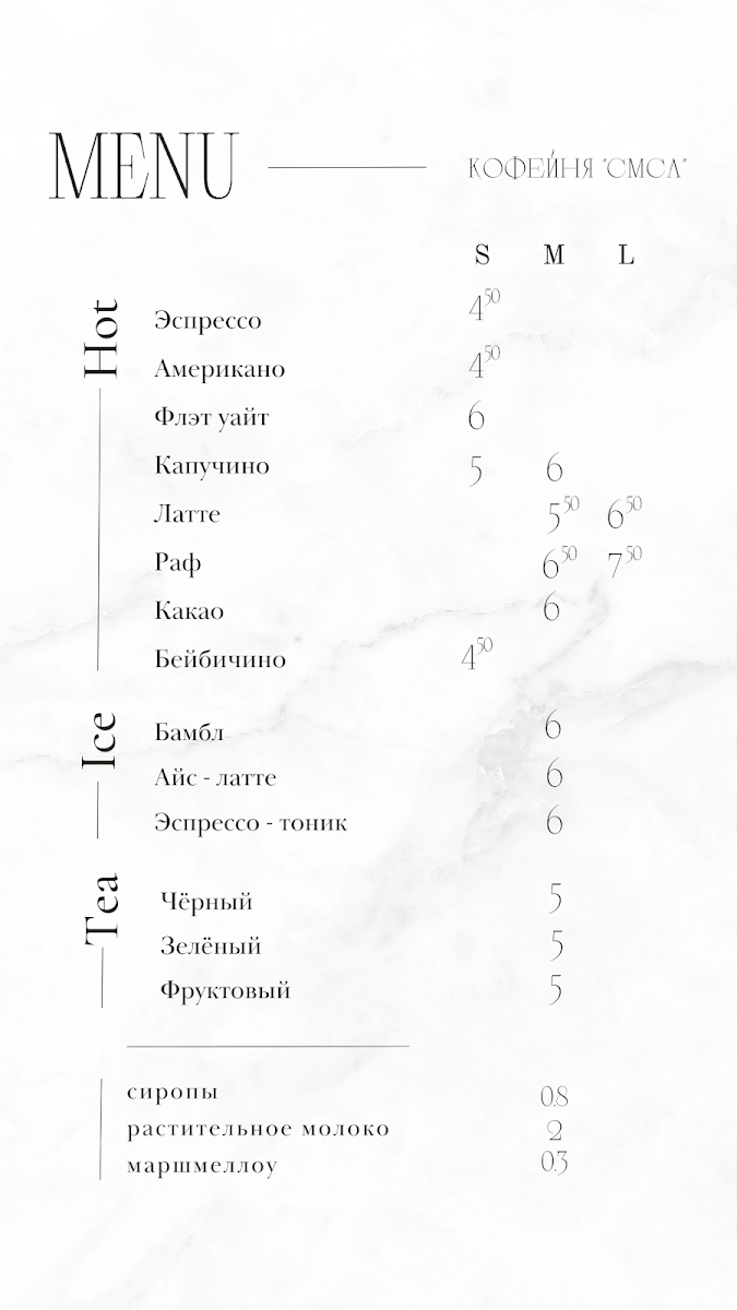 Kofeynya 'Smsl' Menu